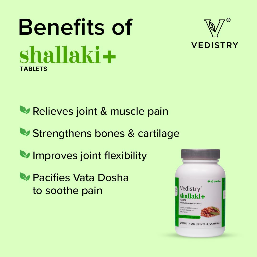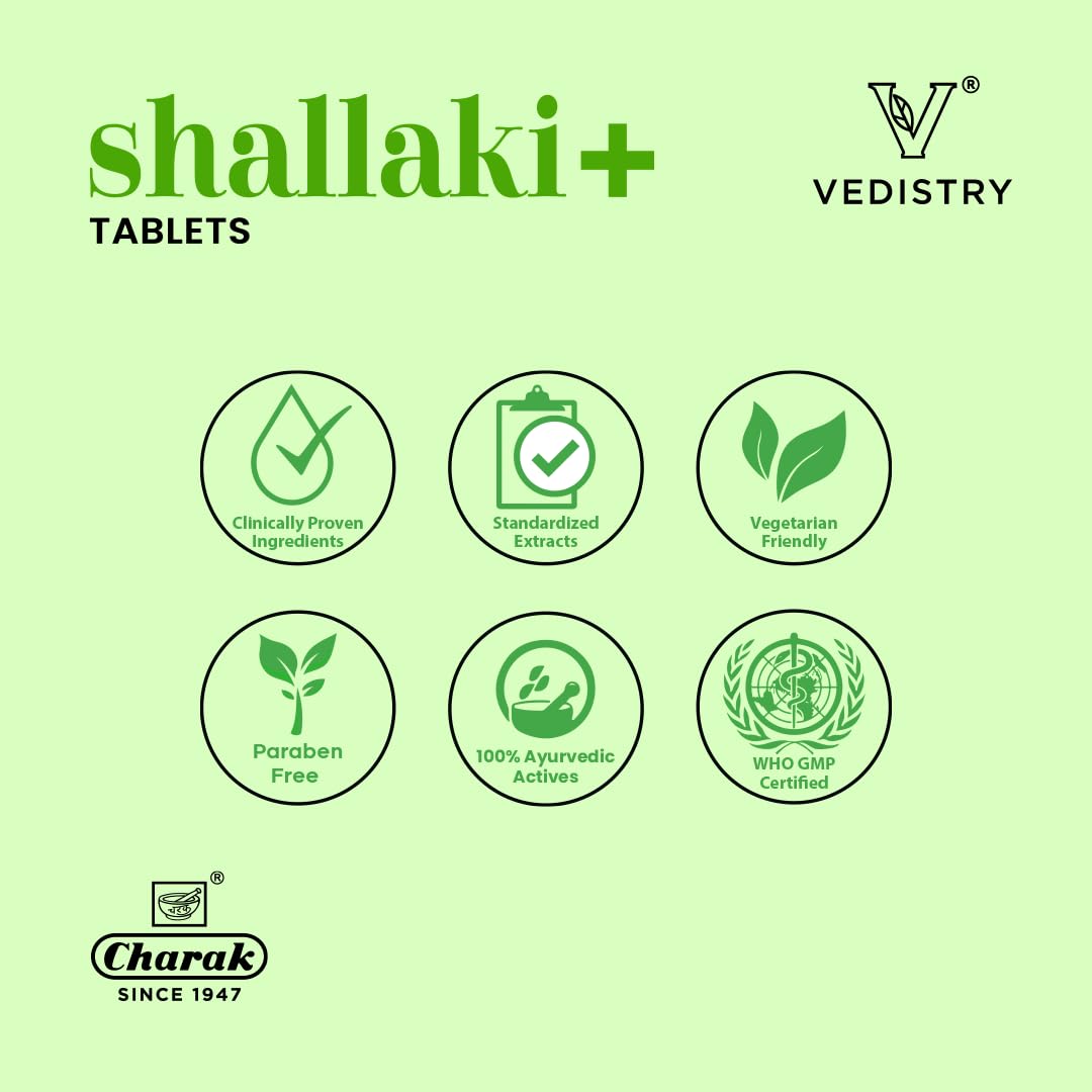 Charak Vedistry Shallaki+ Tablets Joint & Bone Health Supplement | For Joint Pain Stiffness & Arthritis For Men & Women - 60 Tablets (Pack Of 1)