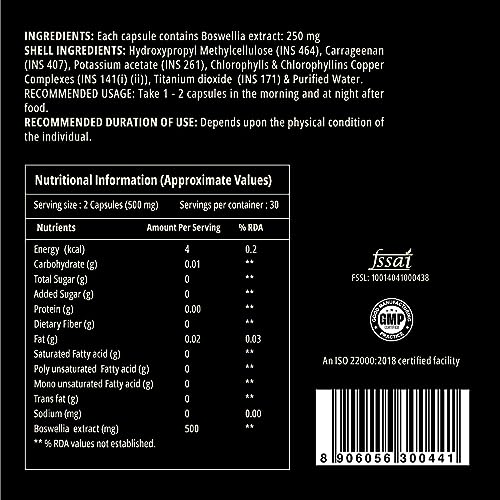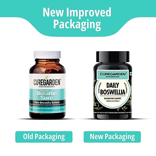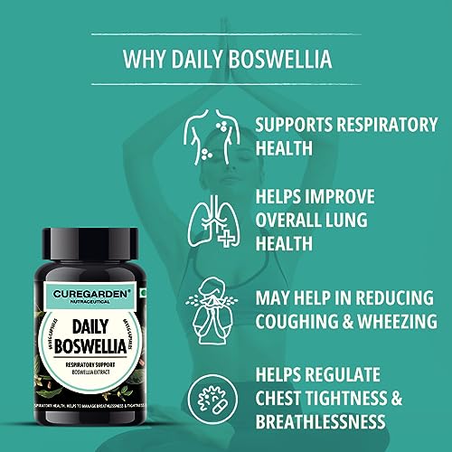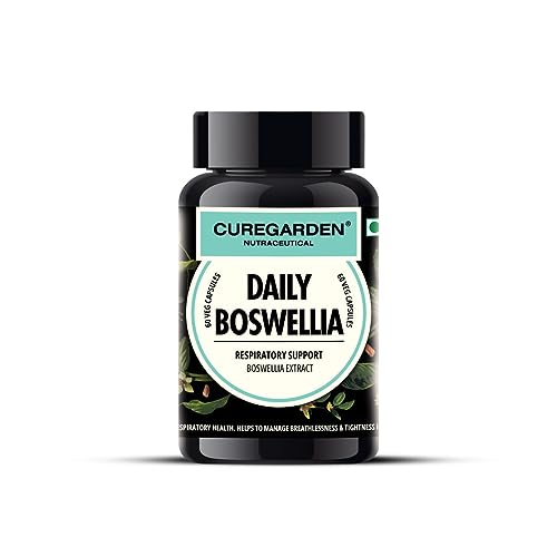 Curegarden Daily Boswellia, Pure Boswellia Extract, Supports respiratory health, Helps to manage Breathlessness & Tightness, 250mg- 60 Veg Capsules.