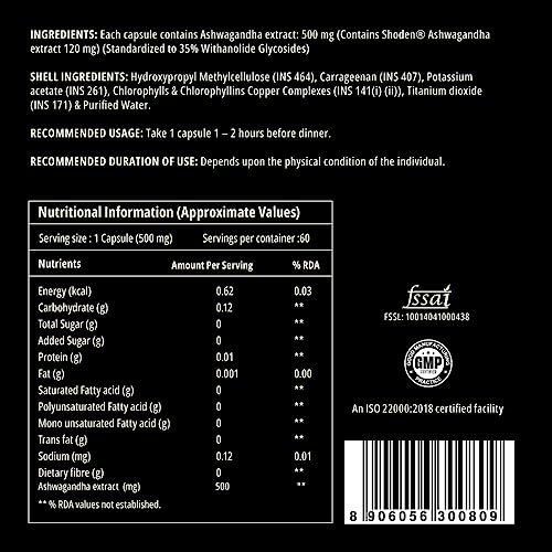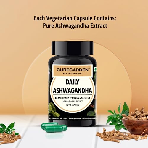 Curegarden Ashwagandha 500 mg | Daily Ashwagandha| 60 vegetarian capsules - Shoden Ashwagandha 120 mg | Stress Relief | Supports Healthy Sleep| Manages Mood Swings.