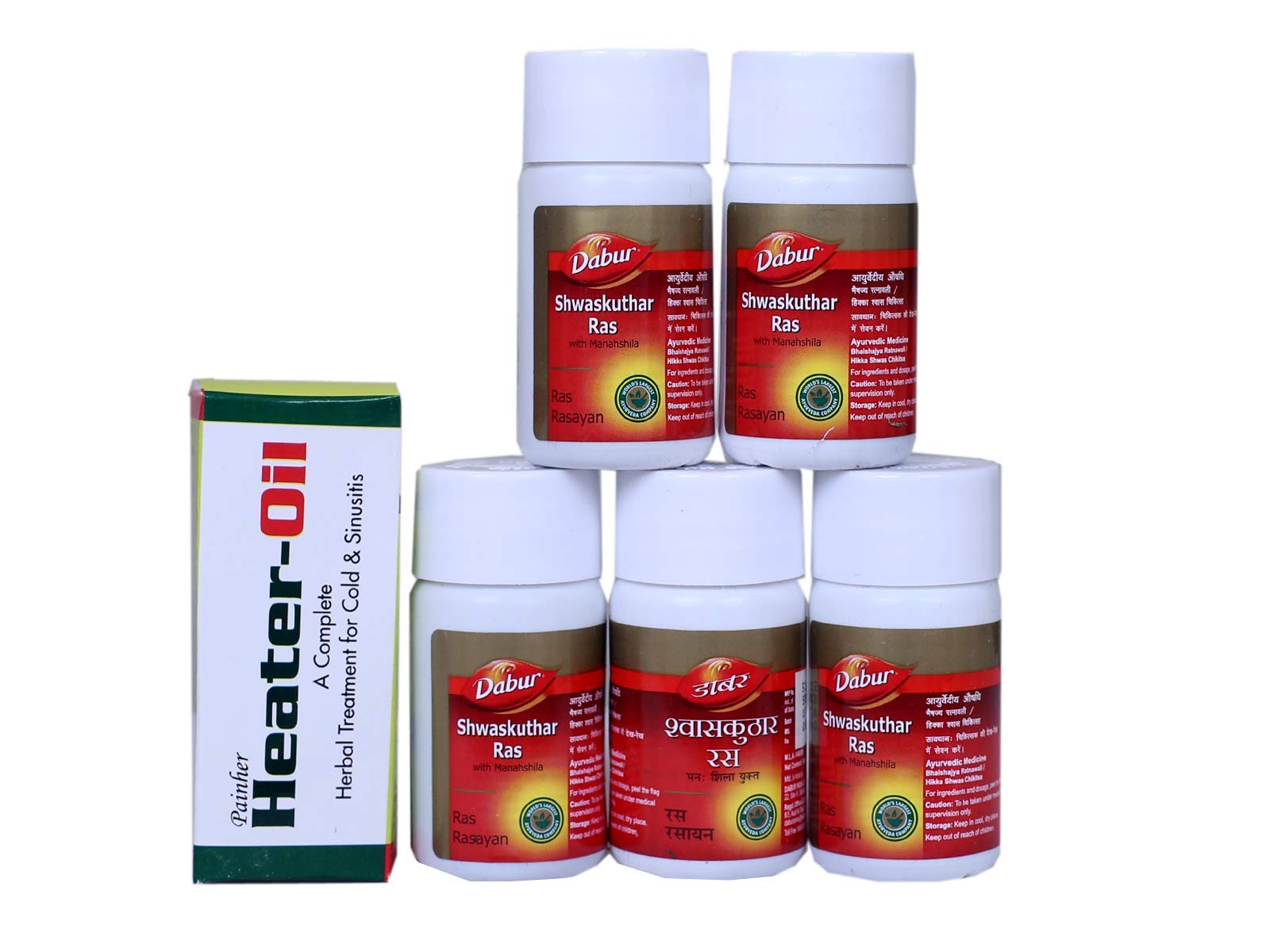 Dabur Shwaskuthar Ras 40 Tablets Pack of Five (5) With Painher Heater Oil