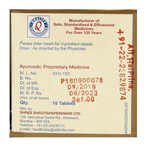 Key benefits of Dhootapapeshwar Brahmi Vati Suvarnayukta: Relieves mental stress and Fatigue with the Balya & Shamak action on Mastishka & Sanjnyavahi nadis. Enhances the capacity of sensory as well as motor organs & promotes intelligence and memory.
