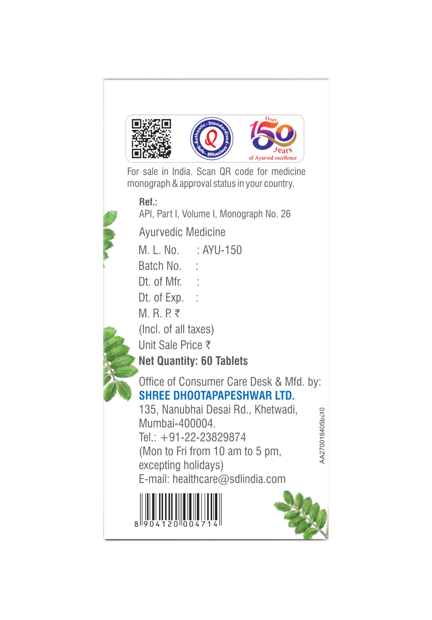 Dhootapapeshwar Gokshur Tablets are a powerful Ayurvedic remedy designed to support urinary tract health and promote joint wellness. Gokshur (Tribulus terrestris) the key ingredient is well-known for its ability to increase urine output and help relieve urinary tract disorders. In addition to supporting the urinary system Gokshur also provides natural relief for joint-related issues by reducing pain stiffness and inflammation. This tablet is beneficial for those experiencing bloating gas and discomfort helping to promote better digestion and overall well-being. Whether you?re looking to manage urinary tract infections or improve joint health Dhootapapeshwar Gokshur Tablets offer a safe natural solution for everyday health support.