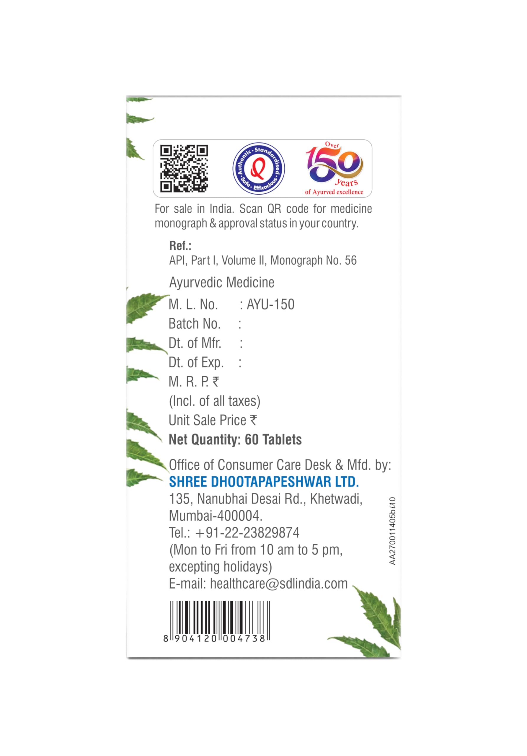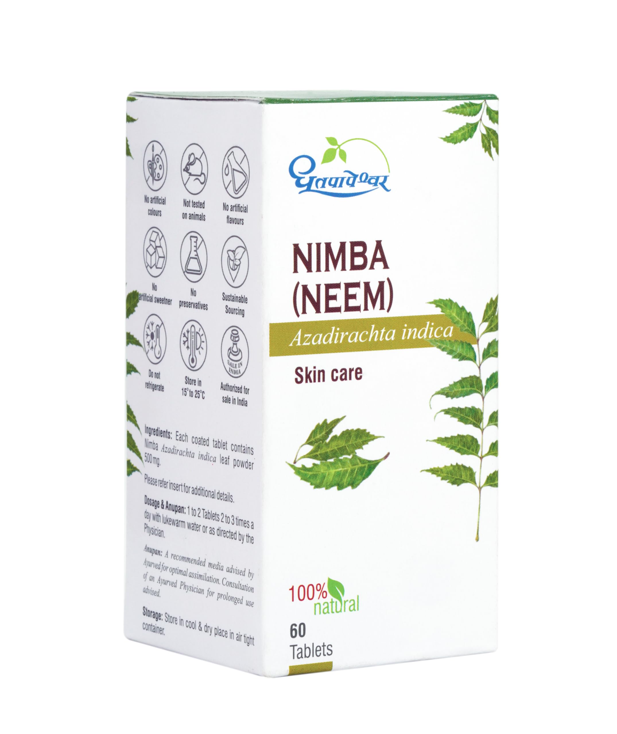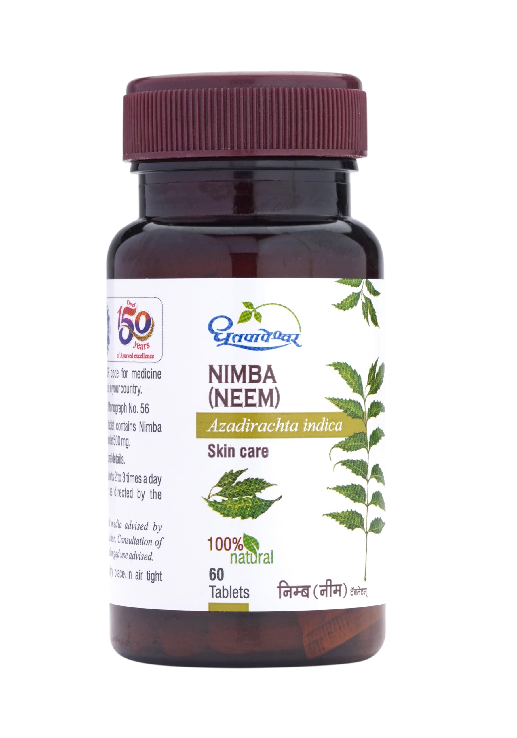 Dhootapapeshwar Neem Tablets are an Ayurvedic remedy made from the potent neem tree known for its powerful blood-purifying properties. Neem helps improve skin health by addressing common skin issues such as acne eczema and other skin conditions thanks to its natural anti-fungal and anti-bacterial properties. Neem is traditionally used in Ayurveda to purify the blood which in turn promotes clear healthy skin. It is effective in treating conditions like Kushtha (skin diseases) Krumi (worms) and Arsha (hemorrhoids). The tablets are also beneficial for improving digestion and healing wounds. Neem?s Rakta Shuddhikar (blood purifying) and Kledaghna (moisture-reducing) properties make it an effective solution for skin ailments caused by secretion and itching. Ideal for anyone looking for a natural solution to improve skin digestive health and overall well-being Dhootapapeshwar Neem Tablets are a must-have in your daily wellness routine.