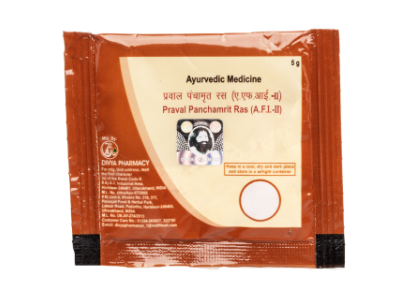 Praval Panchamrit Ras is an Ayurvedic combination made from praval (origin from the sea) . to give you relief from chronic and persistent digestive and hepatic disorders.Divya Praval Panchamrit Ras is used for the treatment of gastric disorders. It is used in the treatment of bloating, anorexia, diarrhea. It is known to be having beneficial effect on the liver, spleen and various gastric organs. It is also beneficial in indigestion. It is also beneficial in various types of urinary disorders. It is also used in the treatment of cardiac disorders. It is also known as a calcium tonic for proper care of the bones. It is also beneficial in liver disorders.* Gastric disorders* Bloating* Anorexia* Liver disorders* Diarrhea* Praval Bhasma* Moti Pishti* Shankh Bhasma* Mukta Shukti Bhasma* Kaudi Bhasma* Aak Dugdha