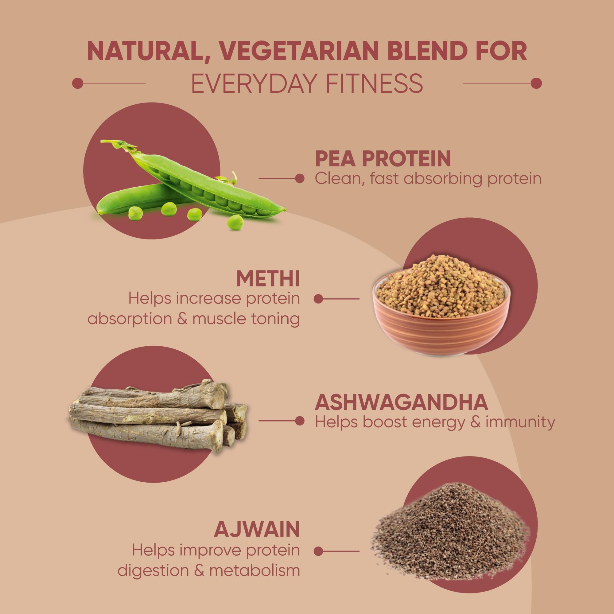 AJWAIN: The Plant Protein Powder contains Ajwain which improves protein digestion and boosts metabolism.