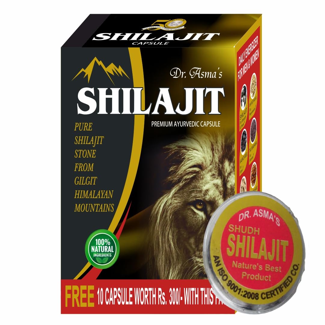 Dr. Asma Shilajit/Shilajeet Capsule for Vigour Stamina & Power (Pack of 30 Capsules + 10gram shilaji