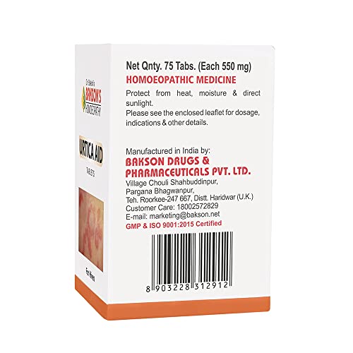 Urticaria or Hives are itchy burning swellings that appear on the skin as an indication of an allergic sensitivity to various allergens specially with a family history. The development of Urticaria occurs when the body releases histamines into the blood stream or tissues as an allergic response causing widening of the capillaries thereby allowing the plasma to escape through its walls resulting in swellings on skin surface. Urticaria appears as red/white blotches on the skin accompanied by itching & burning. Bakson's Urtica Aid helps relieve intolerable itching stinging pains of Hives/Urticaria & symptoms of Angioedema besides fighting ill effects of suppressed Urtiaria.
