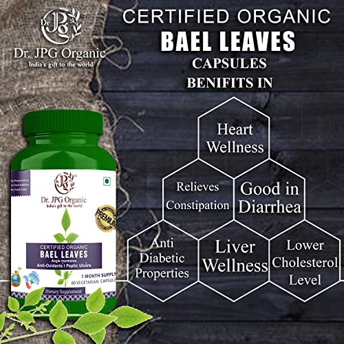 Dr. JPG Organic Bael/Bel Patra Leaves Capsules For Detoxification 60 Veg Capsules | Aegle Marmelos | INDIA ORGANIC Certified (Pack Of 2)