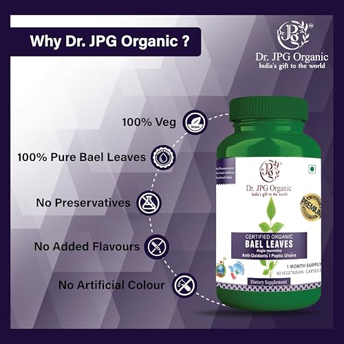 Dr. JPG Organic Bel Leaves Capsules For Detoxification 120 Veg Capsules/Aegle Marmelos/INDIA ORGANIC Certified.