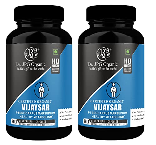 Dr. JPG Organic Bijasar/Vijaysar Capsules For Diarrhea & Dysentary 120 Veg. Capsules | Petrocarpus Marsupium | INDIA ORGANIC Certified.(Pack Of 2)