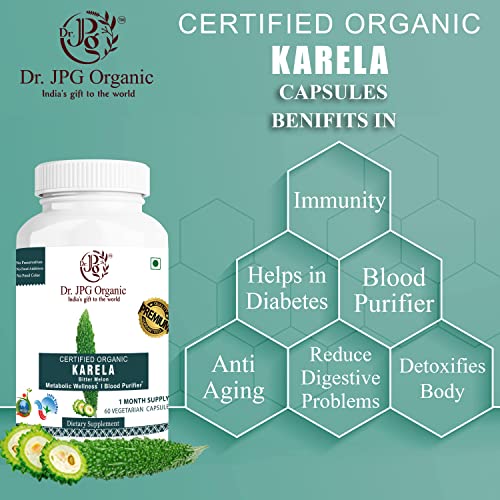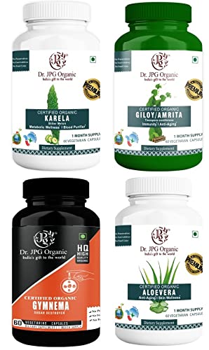Dr. JPG Organic Capsules For Diabetic Care Karela Giloy Gymnema & Aloe Vera 240 veg. Capsules (60 Cap. In Each Bottel) / INDIA Organic Certified.