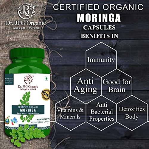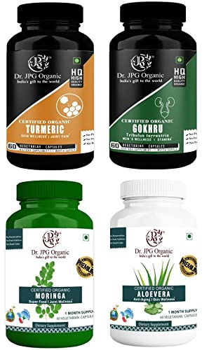 Dr. JPG Organic Capsules For Liver & Kidney Wellness Turmeric Gokhru Moringa & Aloe Vera 240 veg. Capsules (60 Cap. In Each Bottle) INDIA Organic Certified.