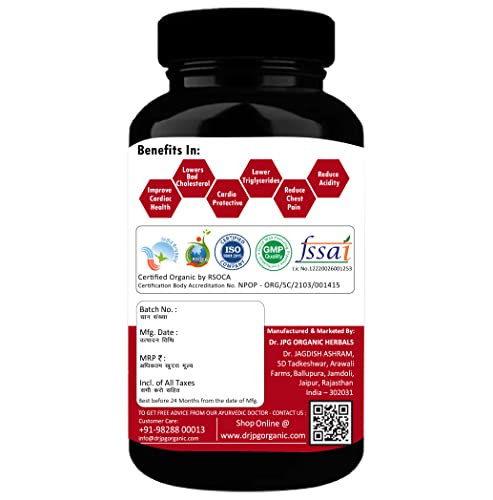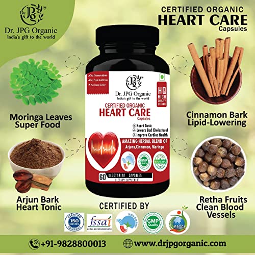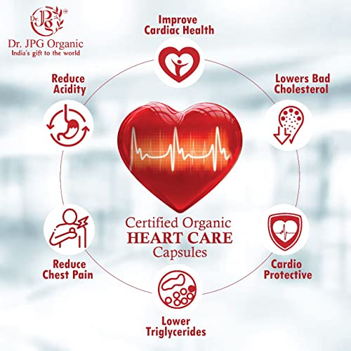 Dr. JPG Organic Heart Care Capules 650mg 60Veg Cpasules/Lowers Cholesterol/Controls Blood Pressure/INDIA Organic Certified.