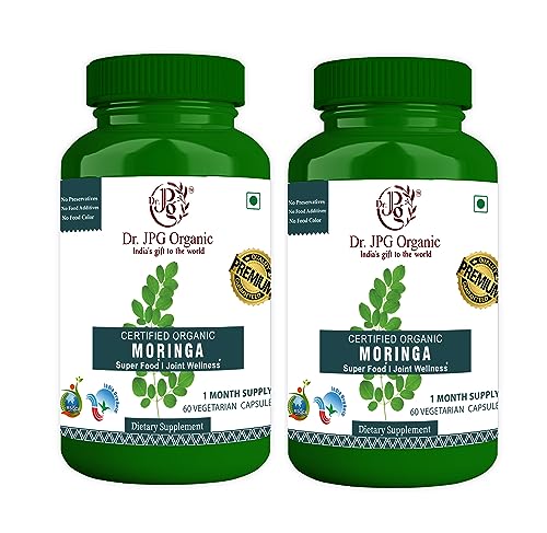 Dr. JPG Organic Moringa Capsules For Joint Wellness Super Food 60 Veg Capsules/INDIA ORGANIC Certified (Pack Of 2)