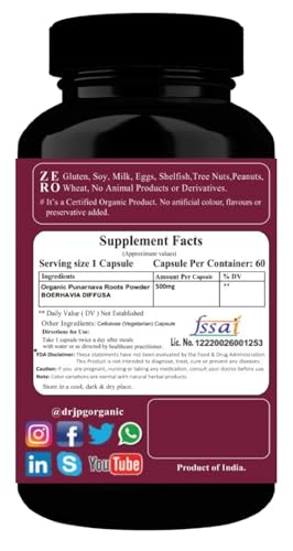 Dr. JPG Organic Punarnava Capsules | Boerhavia Diffusa | For Liver & Urinary Wellness 60 Veg.Capsules | | INDIA ORGANIC Certified. (Pack Of 1)