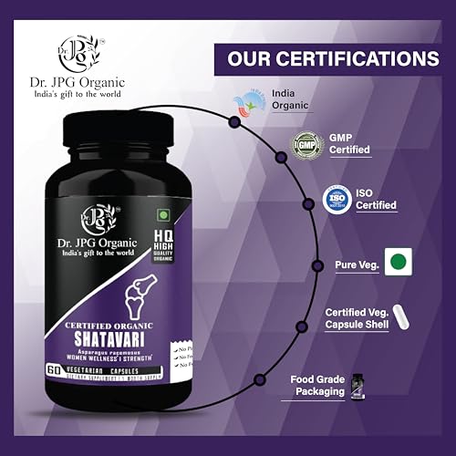Dr. JPG Organic Shatavari Capsules 500mg 120Veg. Capsules/INDIA ORGANIC Certified.