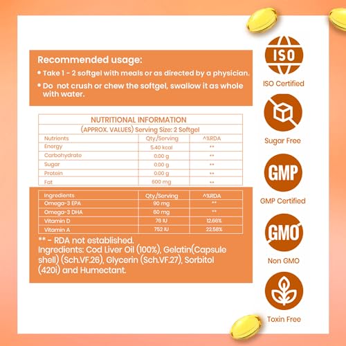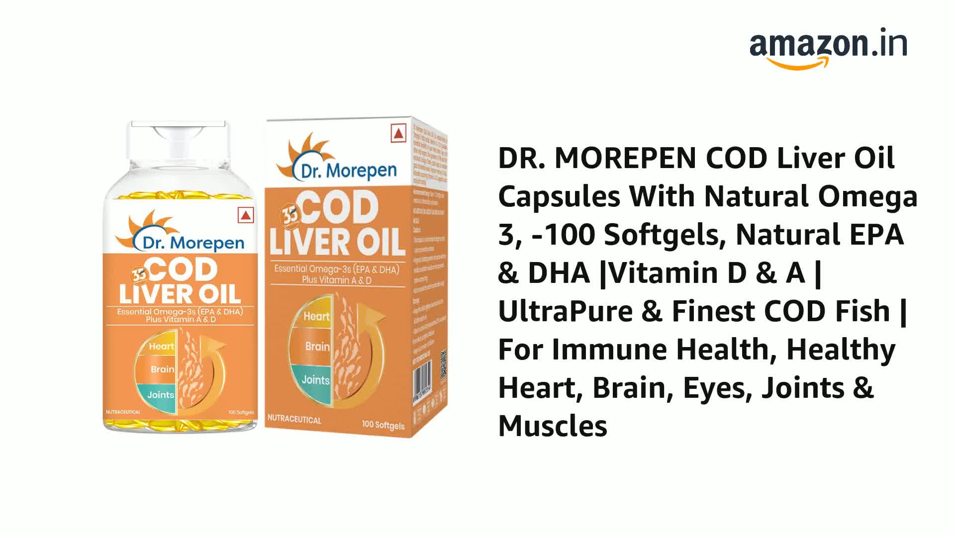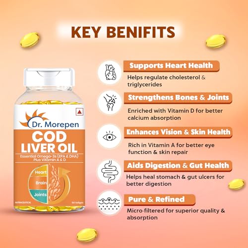 Dr. Morepen COD Liver Oil Capsules | Finest Natural Omega 3, EPA & DHA | Pack of 100 Softgels