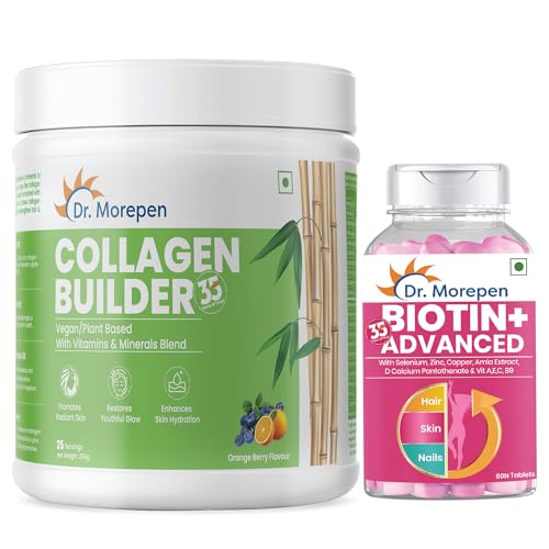 DR. MOREPEN Combo of Biotin+ 60 Veg Tablets & Natural Collagen Builder Plant Based Collagen Powder Orange Berry Flavour - 250gm