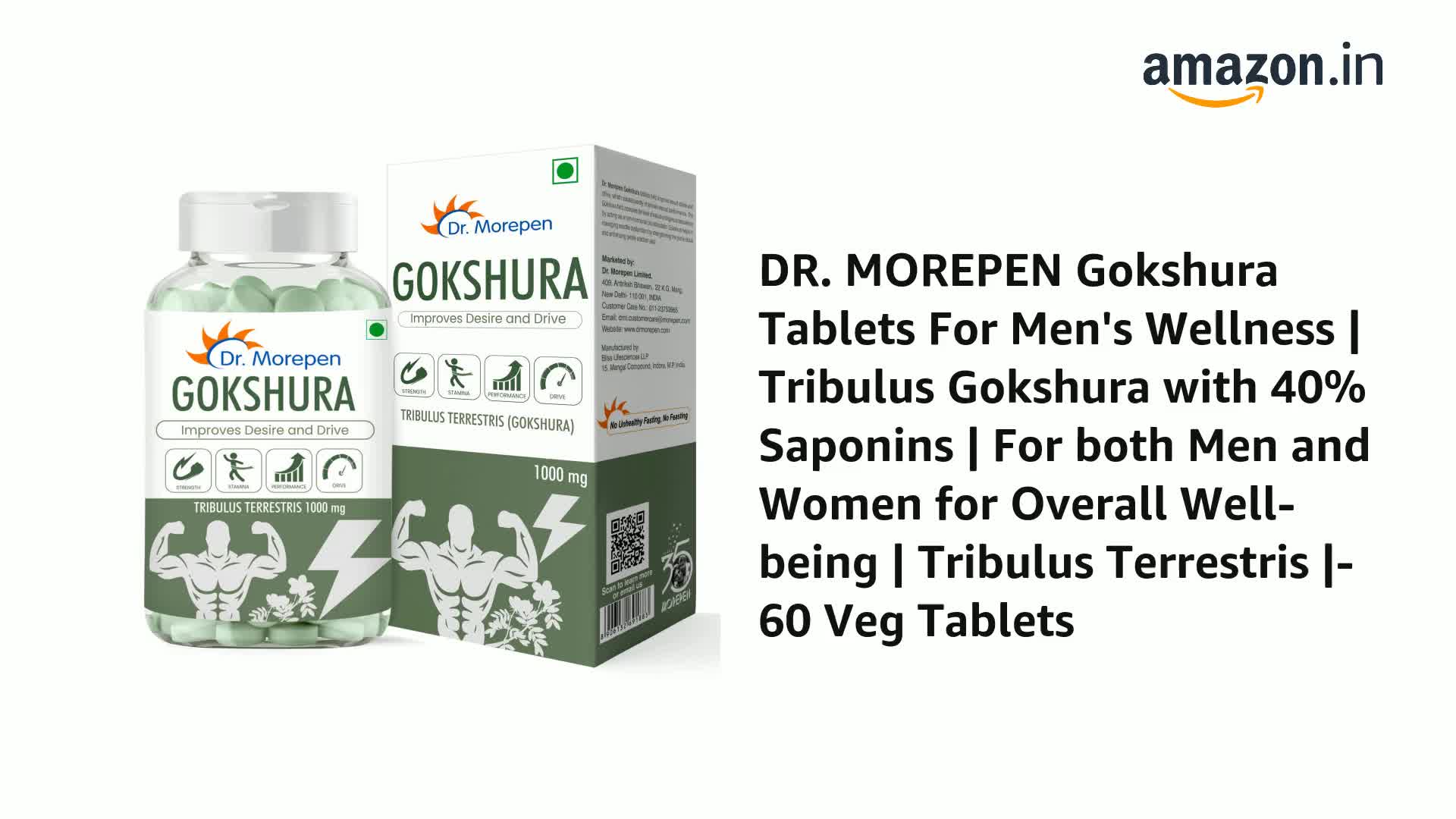 • Dr. Morepen Gokshura is a potent ayurvedic supplement that delivers 1000 mg of Tribulus Gokshura per serving with 40% saponins. This supplement can be used by both men and women for overall well-being.