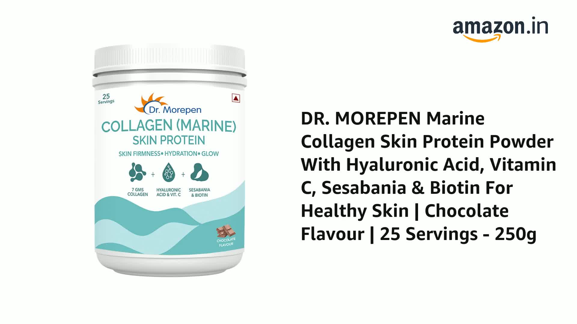 DR. MOREPEN Marine Collagen Skin Protein Powder With Hyaluronic Acid, Vitamin C, Sesabania & Biotin Chocolate Flavour | 25 Servings - 250g