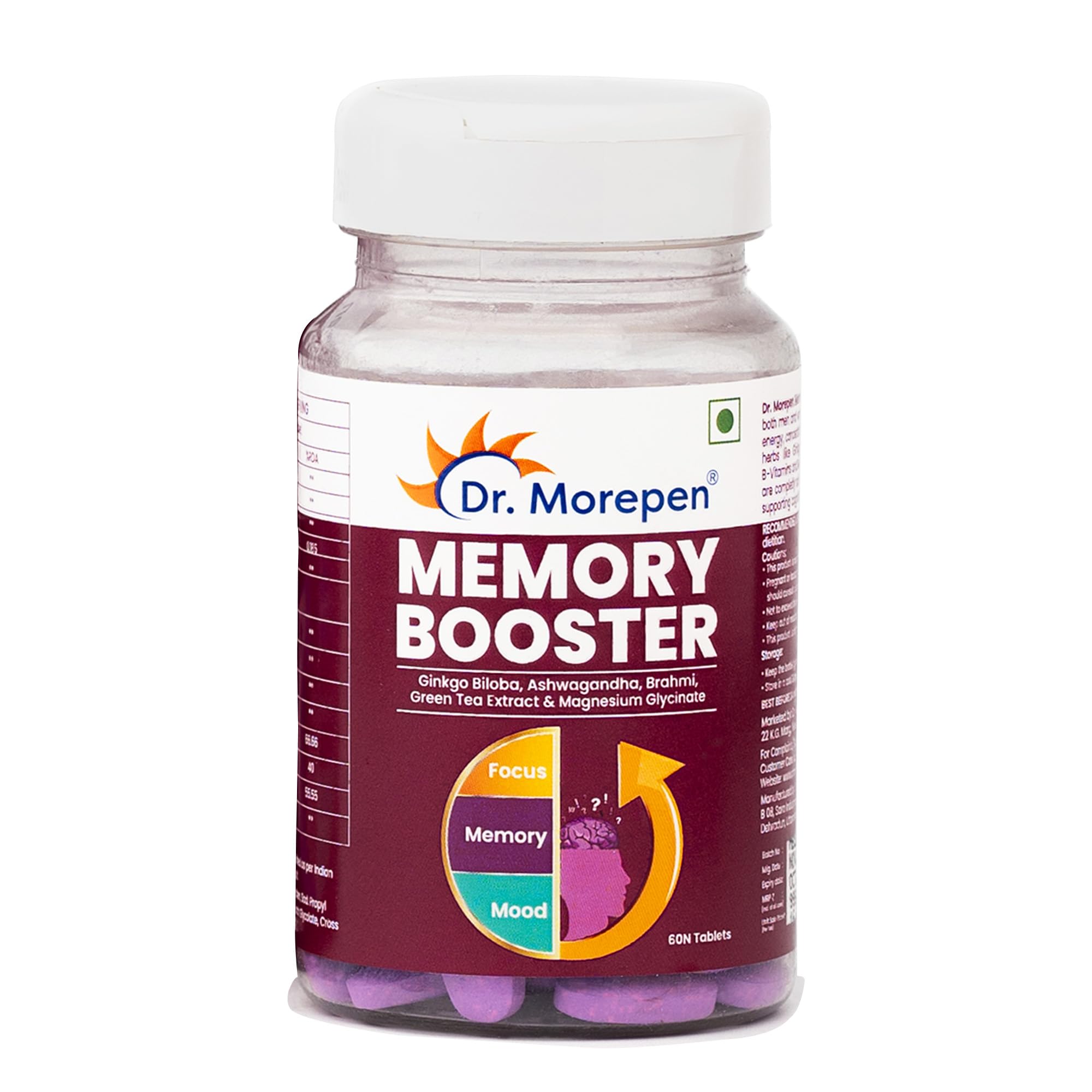 Our Memory Focus & Mood Tablets are ISO Certified GMP Certified Non-GMO & Free from Preservatives. Dr. Morepen ensures to provide the highest quality formulation with rigorous checks & testing. We bring the trust and credibility of more than 20 Years to g
