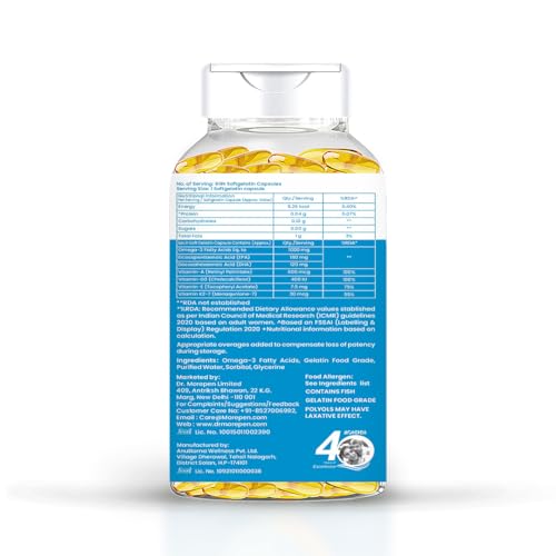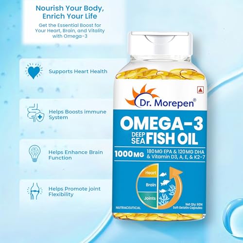 DR. MOREPEN Omega 3 Deep Sea Fish oil 1000 mg Omega with 300 mg DHA with Vitamin A, D3, E & K27 | 60 softgels - (Pack of 1)