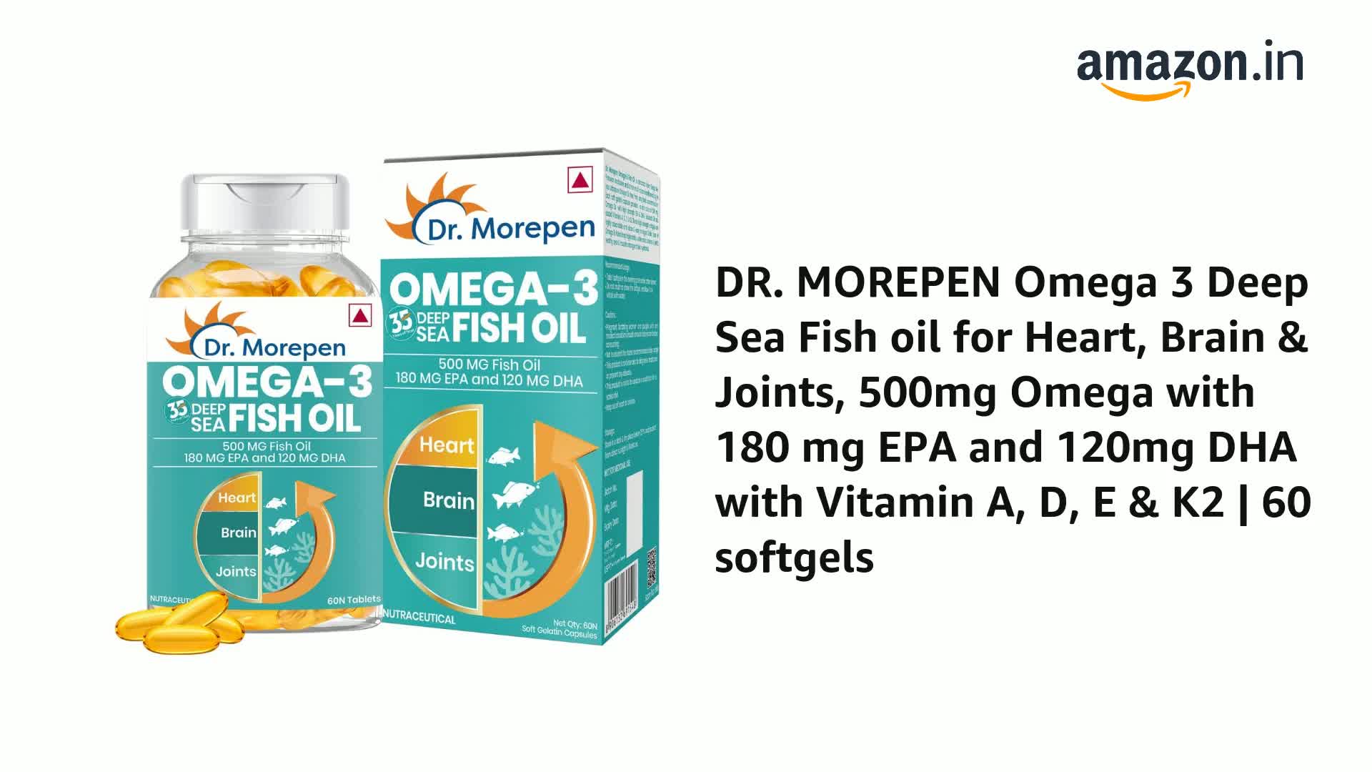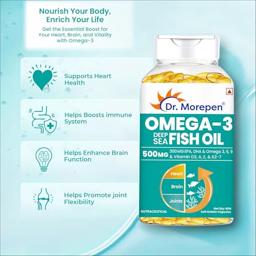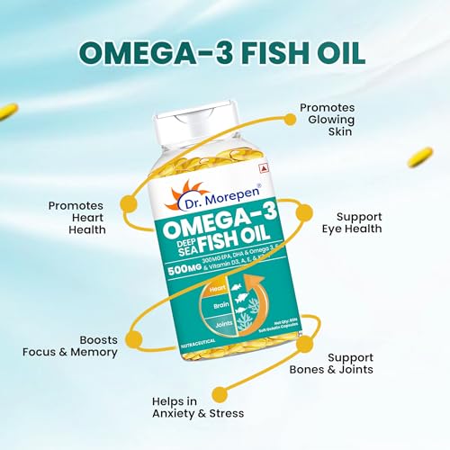 DR. MOREPEN Omega 3 Fish Oil with 300mg EPA & DHA | 500mg | High Potency Fish Oil 60 Softgels (Pack of 1)