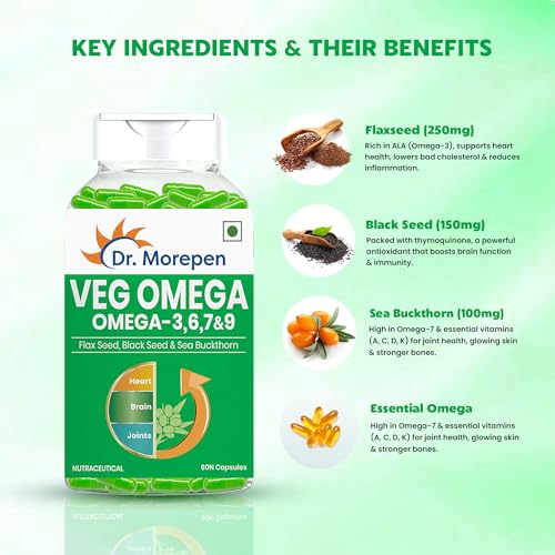 Dr.Morepen VEG-OMEGA IS great source of Omega for vegetarians. its easy to swallow and no after taste. The ingredients are flax seed, black seed and sea buckthorn which is essential and it comes from a trusted brand. Looking forward to amazing results. Will definitely buy again?