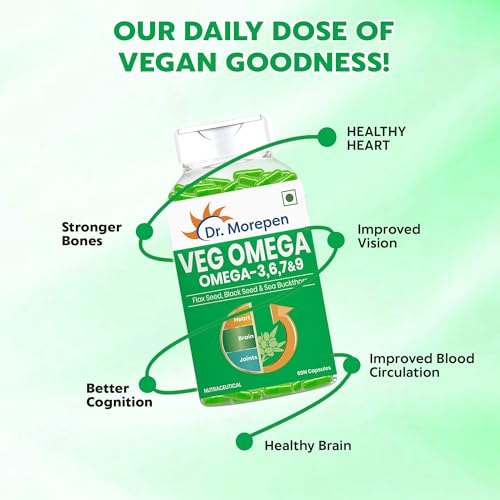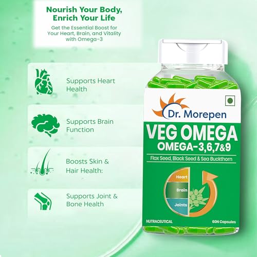 DR. MOREPEN Veg Omega 3 6 7 9 Capsules 500mg Flax Seed, Black Seed & Sea Buckthorn - 60 Veg Capsules Pack of 2