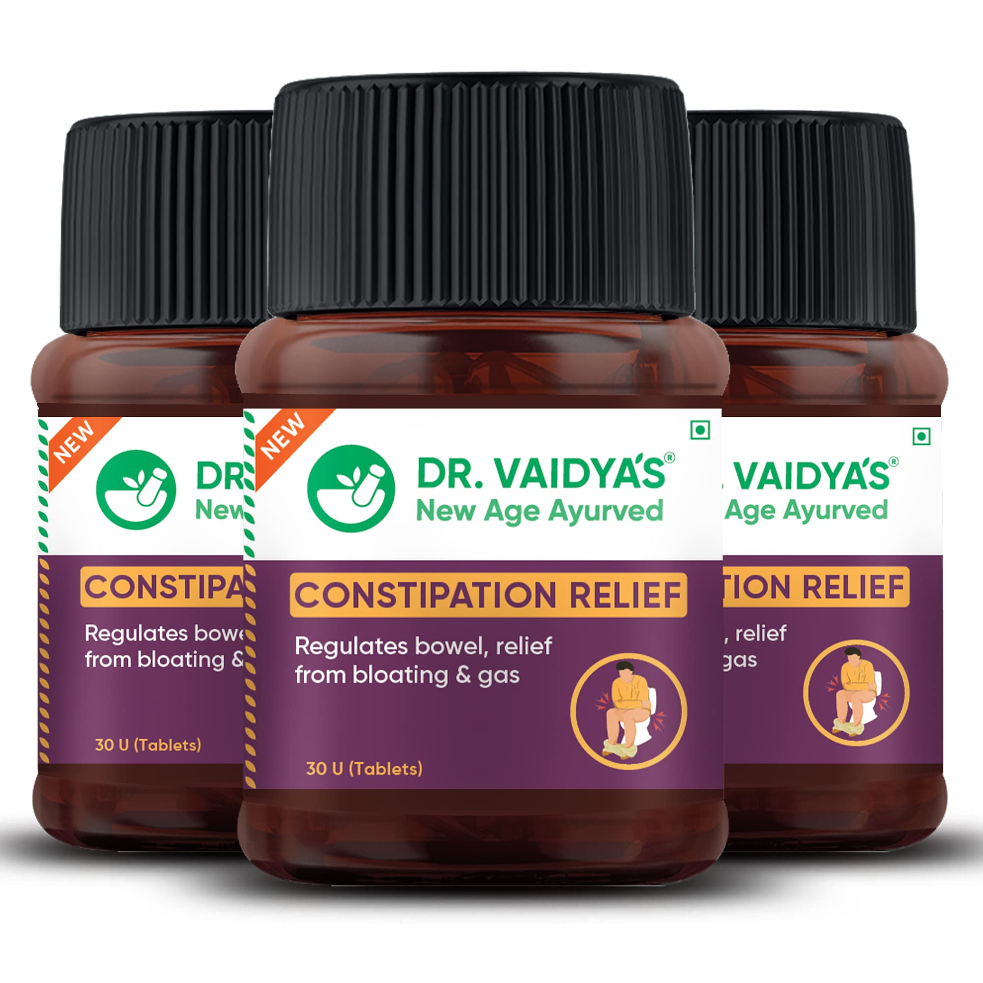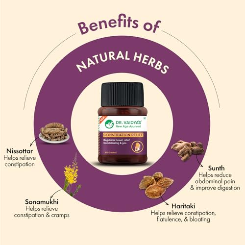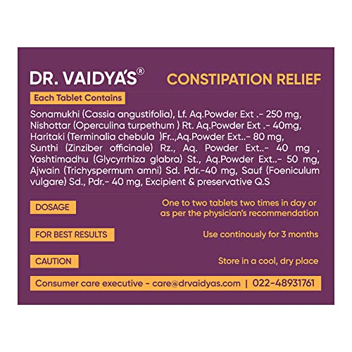Dr. Vaidya's Constipation Relief Tablets | Ayurvedic| Relievs Gas & Bloating | Regulate Bowel Movements | (30 Tablets Each) Pack of 3