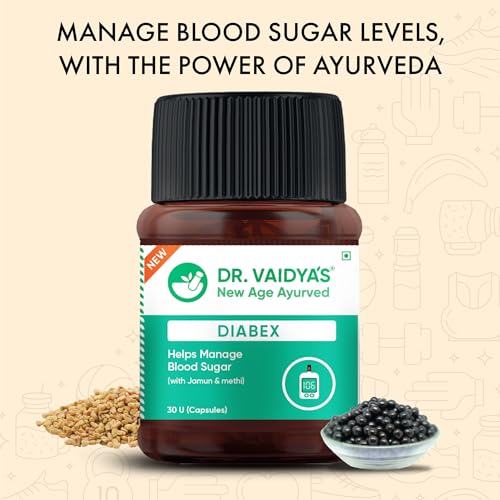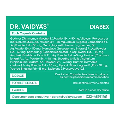 Dr. Vaidya's Diabex Capsules | Ayurvedic - For Blood Sugar Management With Goodness of Methi, Karela & Neem | (30 Capsules) Pack of 2