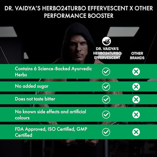 • Contains Richness of 6 Natural Ingredients - Dr. Vaidya's Herbo24Turbo Effervescent contains science-backed ingredients such as Shilajit Ashwagandha and Safed Musli for enhanced performance and strength