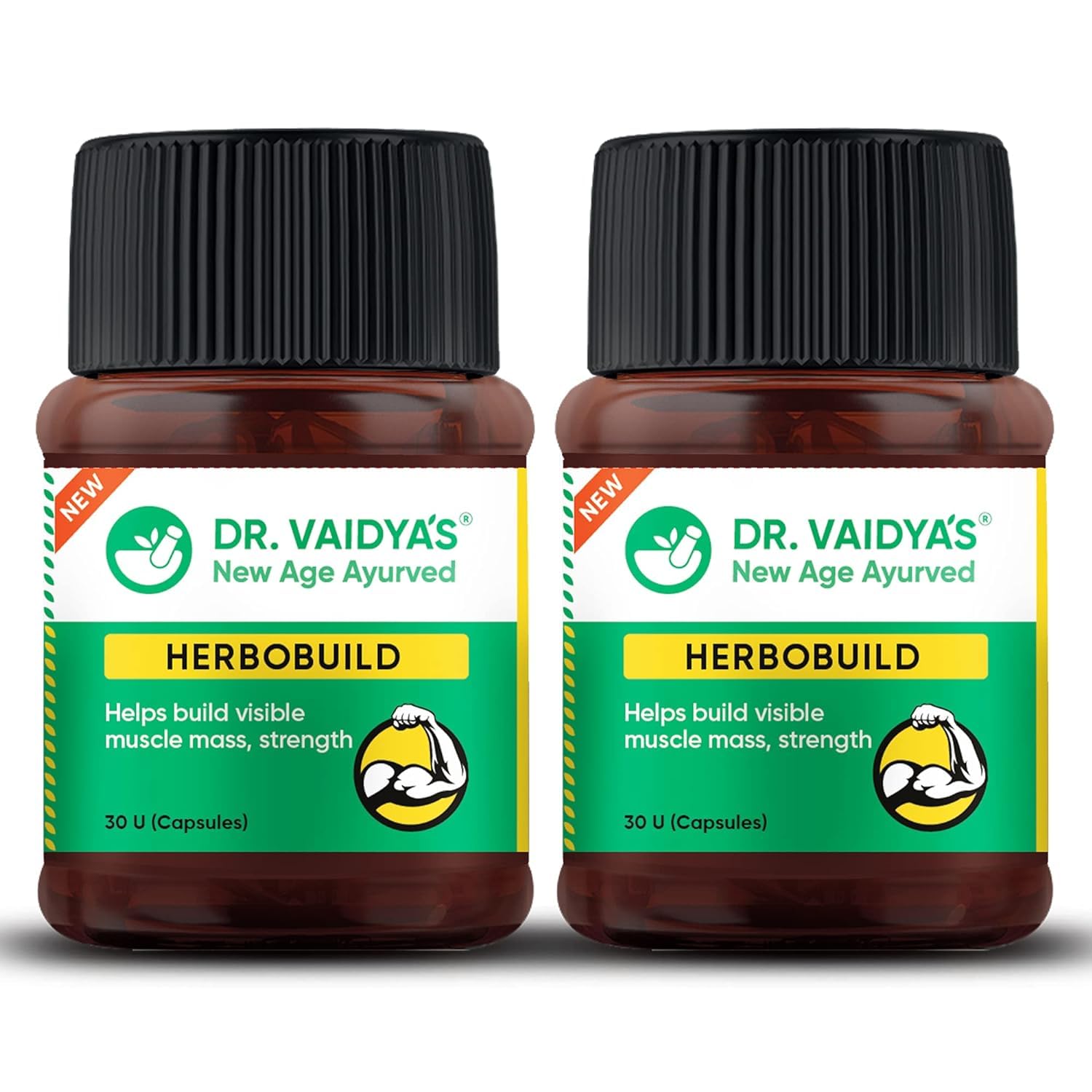 Dr. Vaidya's Herbobuild Capsules | Ayurvedic Muscle & Mass Gainer For Enhanced Stamina & Peak Fitness | (30 Capsules Each) Pack of 2