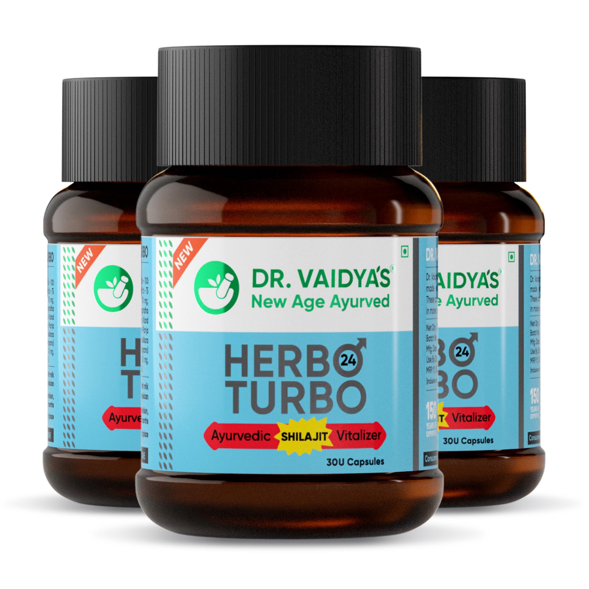 Dr. Vaidya’s Herbo24Turbo Capsules | Supports Vitality | For Strength, Stamina & Power | Shuddha Shilajit, Safed Musli | Sugar Free | Pure Ayurvedic Extracts | 30 capsules (Pack of 3)