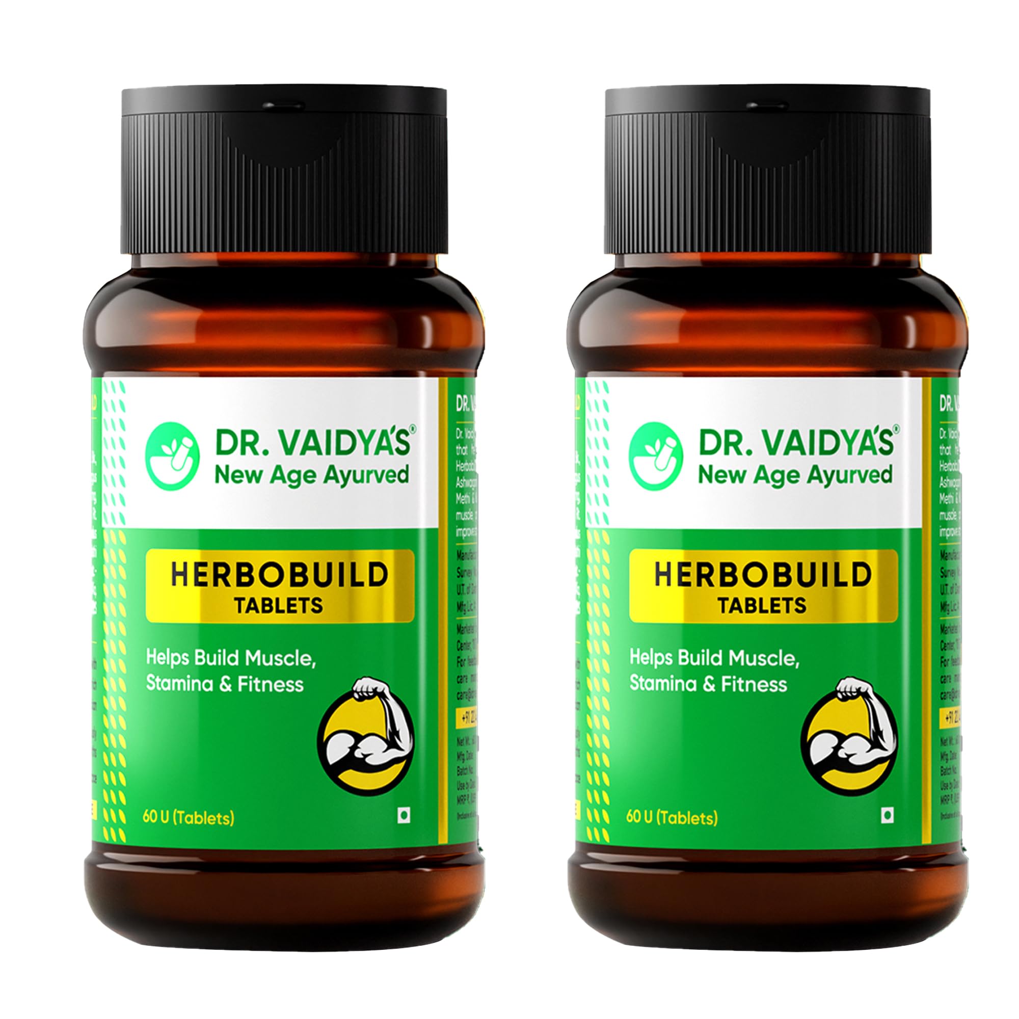 DR. VAIDYA'S new age ayurveda Herbobuild Tablets | Ayurvedic Muscle & Mass Gainer For Enhanced Stamina & Peak Fitness | (60 Tablets) Pack Of 2