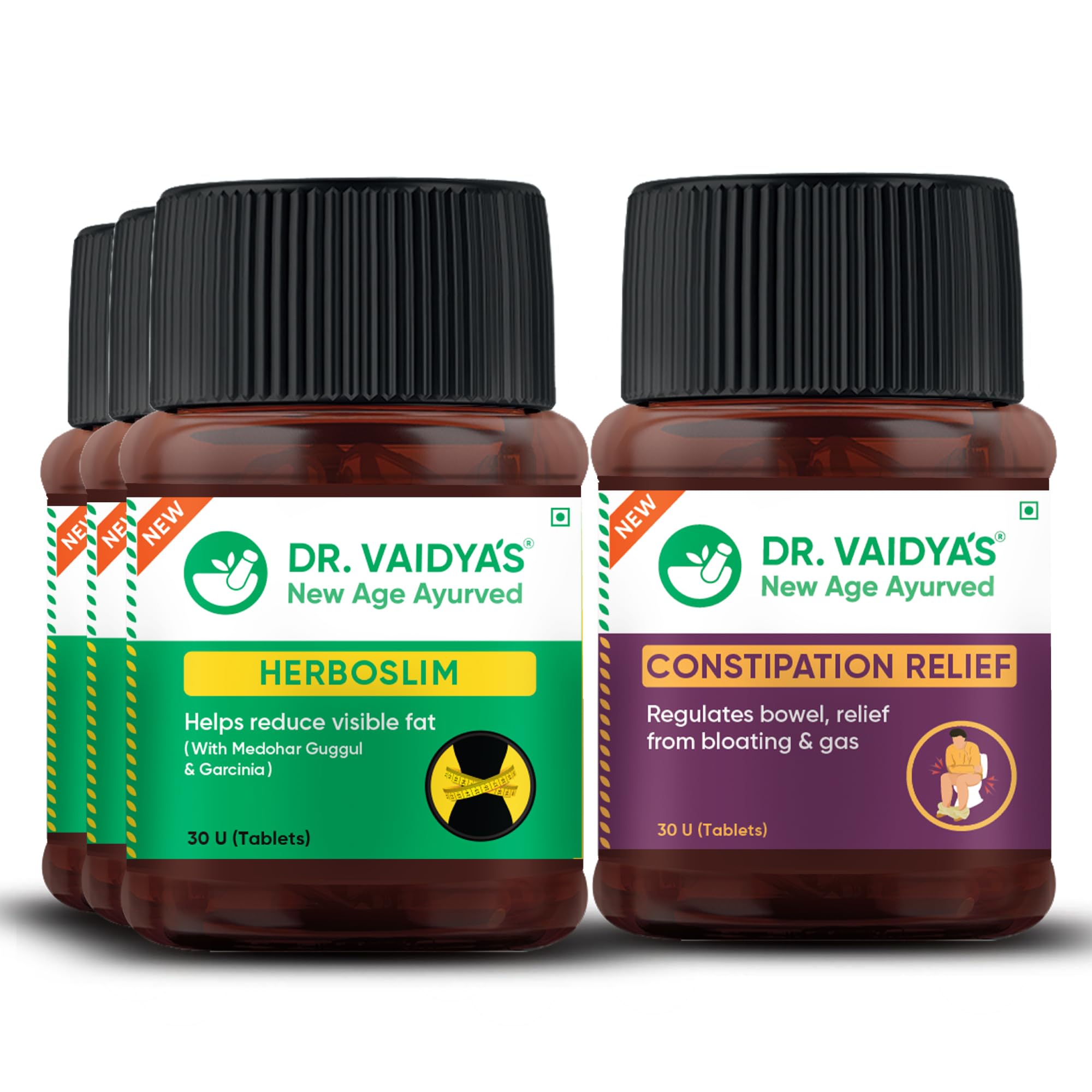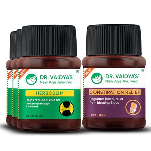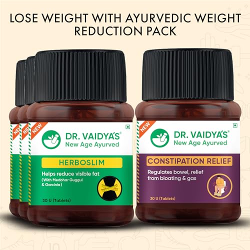 DR. VAIDYA'S new age ayurveda Weight Reduction Pack, Ayurveda for Weight Reduction Herboslim (30 Capsules X 3), Constipation Relief Capsules (30 Capsule X 1)