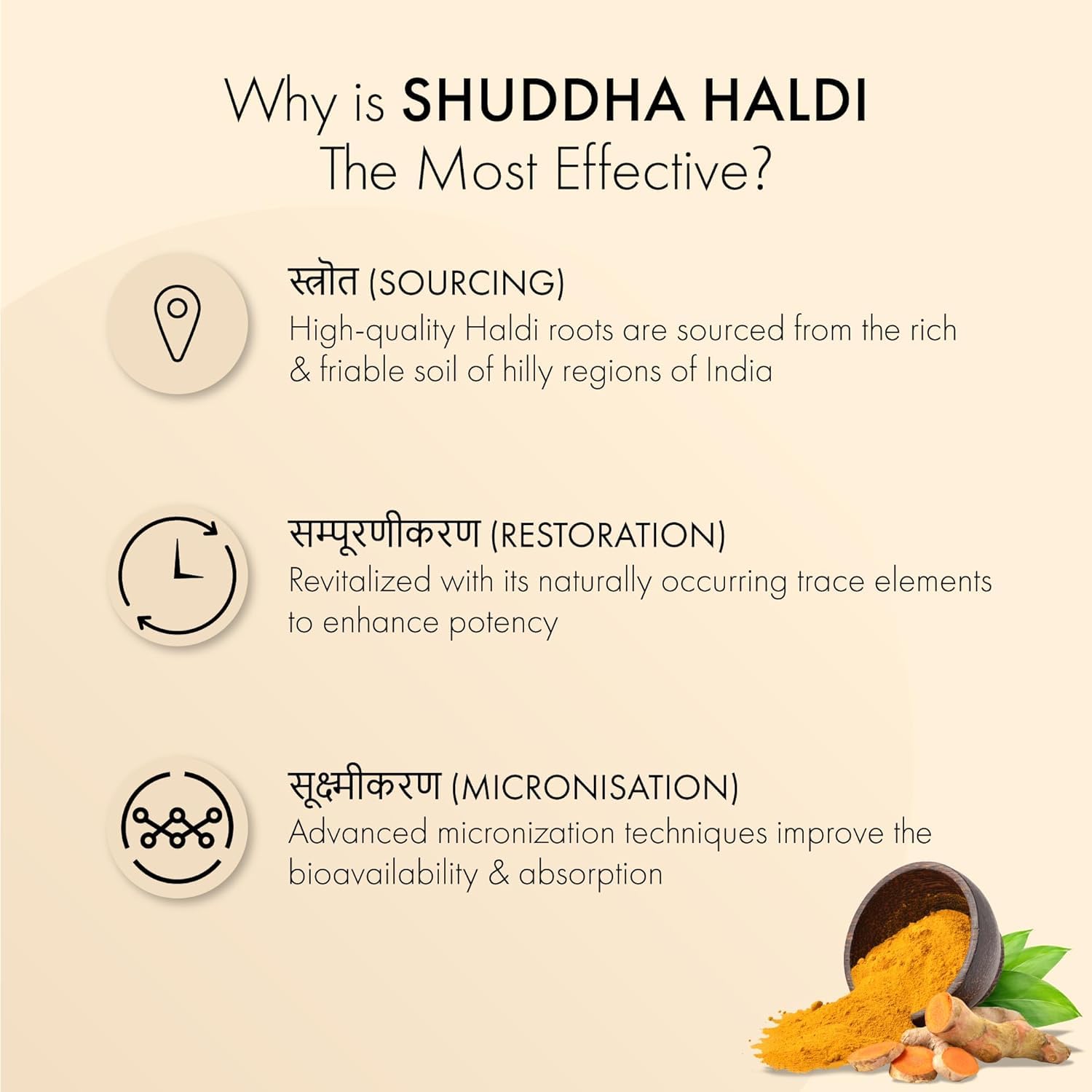 Experience the transformative power of Dr. Vaidya's Shuddha Haldiâa herb that transcends its ordinary nature to become the most effective anti-allergy and skin rejuvenator promoting healthy skin and overall well-being. Our mission is to provide you with the purest and most potent Haldi achieved through our exclusive 3-Step Sanskara process. This meticulous method ensures the preservation of its natural benefits delivering this extraordinary herb right to your doorstep and empowering you to experience its remarkable effects.