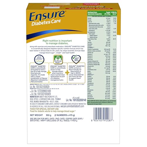 Ensure diabetes care is a diabetes specific nutrition. It is sugar (sucrose) free has protein and balanced ratio of protein:carbs:fat along with micronutrients to support overall health. When included in diet as partial meal replacement either in breakfast lunch or dinner it can help to keep blood glucose and weight under control. It contains nutrients which help provide steady carbs build muscle mass heart health digestive health.