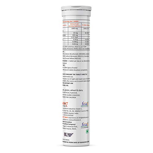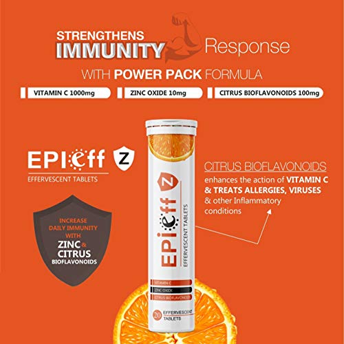 Antioxidants help to boost your immunity.Vitamin C with Amla Extract and Zinc supports and strengthens daily immunity. Anyone can consume Epieff Z effervescent tabletsSugar-Free Gluten-Free Dairy-freeIt's 100% safe and VeganPhyllanthus emblica L extract (Amla): 1000mgVitamin C (L-Ascorbic Acid): 40mgZinc Sulphate : 10mgCitrus Bioflavonoids: 100mgEnergy : 12.78KcalCarbohydrates: 3.17gProteins: 0.00gFats: 0.01