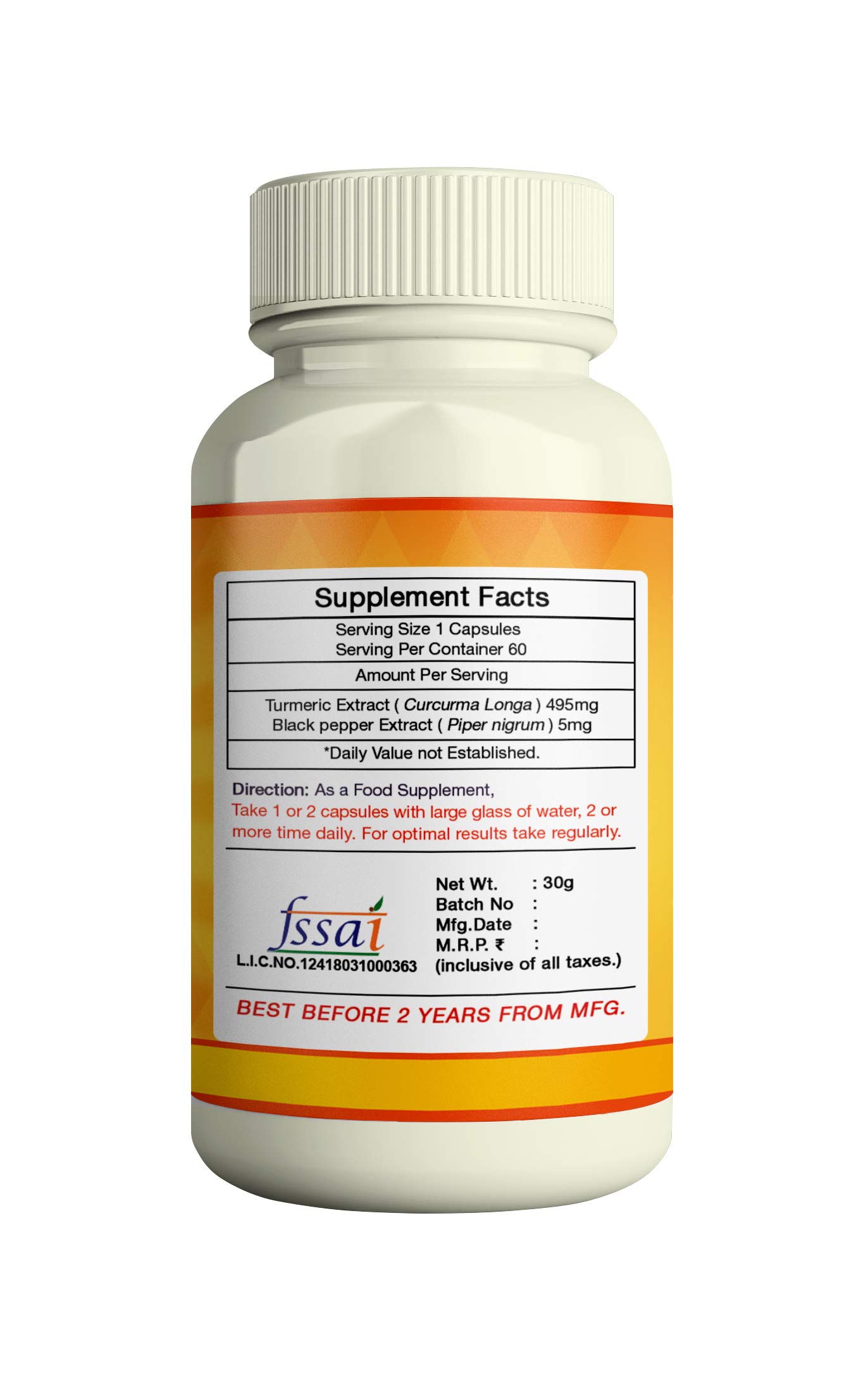 ERBZENERG Curcumin Extract (Curcuma longa) - 60 Capsules(Pack of 2)