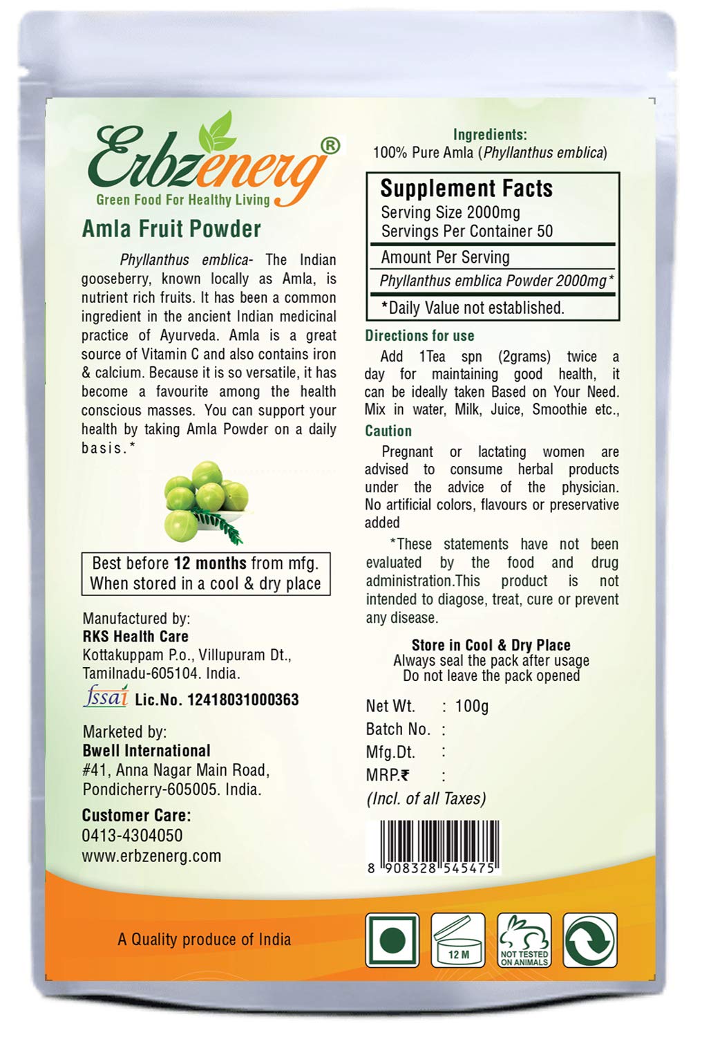 ERBZENERG Organic AMLA Powder 100g | Pack of 4