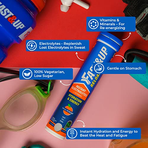 Fast&Up Vitalize - Immunity Essential Multivitamin For Men & Women (20 Effervescent Tablets - Orange Flavor) - 21 Vital Vitamins & Minerals with Vitamin C D & Zinc For Daily Health & ImmunityFast and Up Vitalize is an effervescent daily multivitamin supplement with a combination of 12 vitamins 9 minerals and a natural nitrate rich beetroot extract for overall health and maintenance. This daily multivitamin supplement is made with effervescent technology which provides faster absorption greater effectiveness and significant nutritional benefit better than any other conventional and traditional form of multivitamin supplementation. Specifically made to provide the daily nutrient support Fast and Up Vitalize daily multivitamins help bridge the nutritional gap lacking in todayâs food and diet practices. This daily multivitamin drink is a perfect supplement to provide with an optimal supply of the daily vitamins and minerals as without which our energy levels can drop; it can make us feel sick or tired leading to a serious deficiency if avoided for a longer period of time. With the goodness of daily multivitamins. Note: Product outer packaging may vary as per stock availabilityFast&Up Reload electrolyte energy and hydration - sports drink - Pack of 20 effervescent tablets - Orange flavourFast&Up is India's first effervescent nutrition brand to keep you active. Fast&Up Reload is a hypotonic hydration drink with the ideal combination of Electrolytes Vitamins Minerals and Antioxidants to rehydrate and maintain electrolyte balance during the workout and your everyday active lifestyle. It is India's first Informed choice electrolyte drink. Fast&Up Reload supplement is available in effervescent tablet form which helps you to replenish electrolytes without any digestive issues. With its unique formulation this electrolyte sports drink ensures instant hydration. Because of its hypotonic nature Reload increases the rate at which water is absorbed by the body and speeds up the rehydration process. Evidence suggests that a hypotonic sports drink provides minimally to moderately faster fluid absorption than more concentrated isotonic-hypertonic sports drinks. Fast&Up Reload contains Calcium and Magnesium along with electrolytes to help prevent cramps. Vitamin C in this sports electrolyte drink helps reduce muscle soreness and fatigue. This easy to carry electrolyte drink understands the serious needs of hydration and is uniquely formulated without any overloading of sugar. Fast&Up Reload can be consumed by anyone during workout or anytime during the day by someone who leads an active life to help fight exhaustion