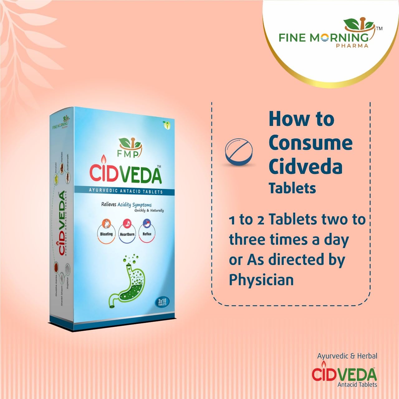 Fine Morning Pharma Ayurvedic and Herbal Cidveda Tablets For Acidity/Gas Relief or Better Digestion- 30 Tablets Each (Pack of 1)