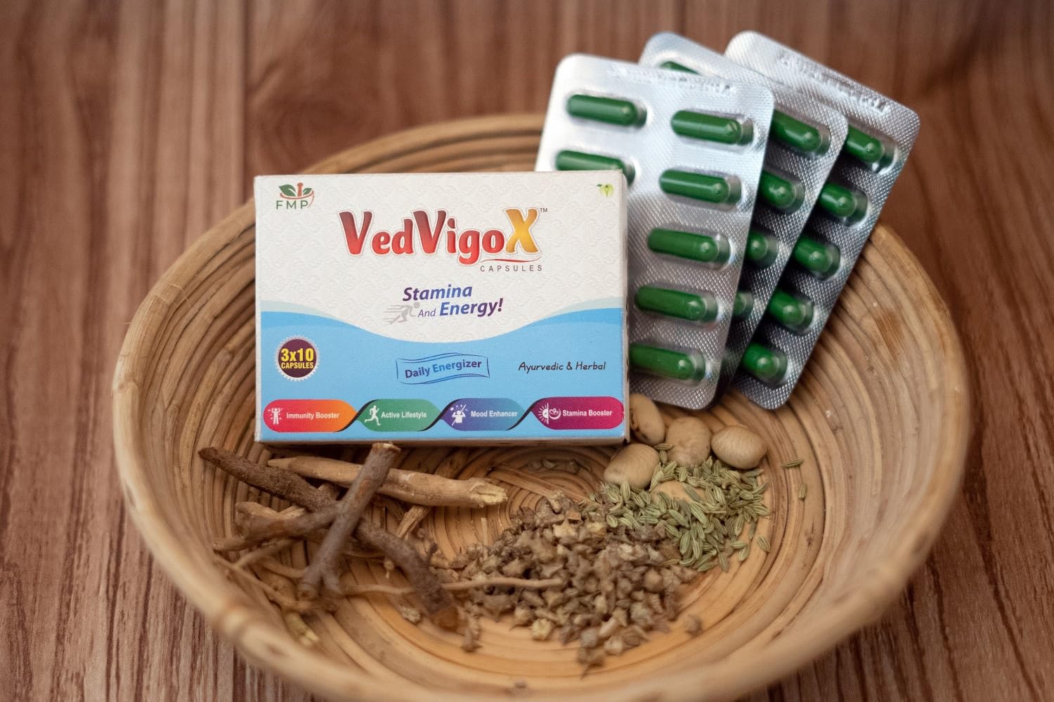 Vedvigox Capsules [Indication] It is an Ayurvedic formulation that boosts energy and stamina maintain good health strengthen body prevent fatigue and weakness.