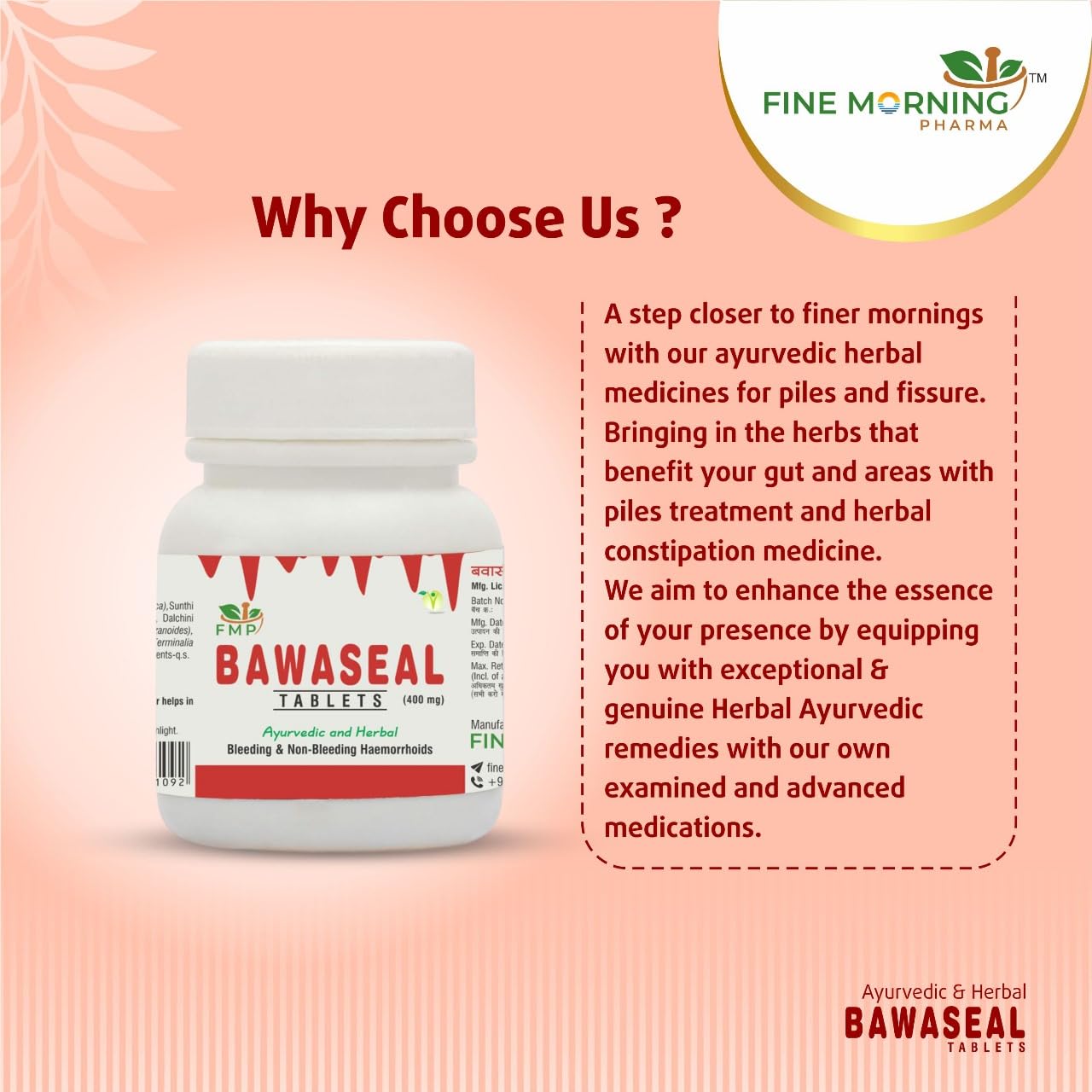 Fine Morning Pharma Ayurvedic Bawaseal Tablets Reduces Congestion of Piles or Hemorrhoids- Pack of 3