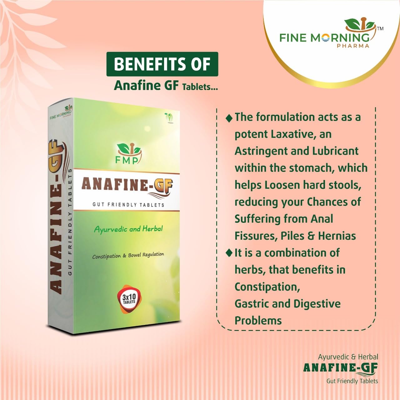 Anafine (GF) Tablets- The Formulation acts as a potent Laxative an Astringent and Lubricant within the stomach which helps Loosen hard stools reducing your chances of suffering from Anal.