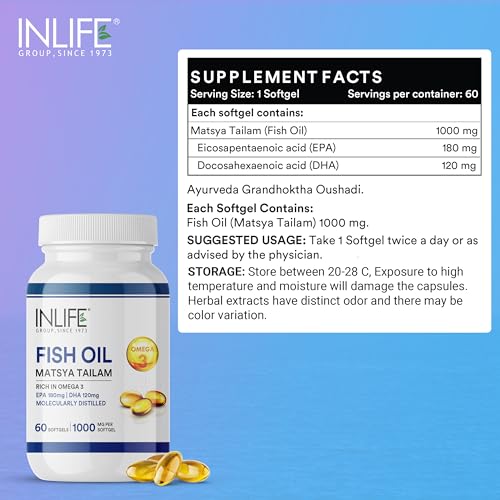 The ultimate natural source of Omega 3. Helps to maintain a healthy body for overall wellness. Mood power skin hair heart health and joint relief may be benefits of high-quality Omega 3! 1000 mg Fish Oil per serving with 300mg Omega 3 (180 mg EPA 120 mg DHA). Fish oil must have an adequate amount of EPA and DHA to have positive effect on your health. For optimal results take 1 softgel twice daily or as directed by a healthcare professional. Purity through molecular distillation. Our fish oil is purified with molecular distillation - one of the few current methods that can purify from harmful impurities to below detectable limits for human consumption. The body cannot effectively make EPA and DHA on its own and most people do not get enough Omega-3 in their regular diets. In general 500 to 1000mg Fish Oil per day is recommended. Omega-3 family of essential fatty acids are known as essential fatty acids because they are necessary for survival but cannot be synthesized by the body Omega-3s play important roles in the development of membranes and helps to maintain overall health.