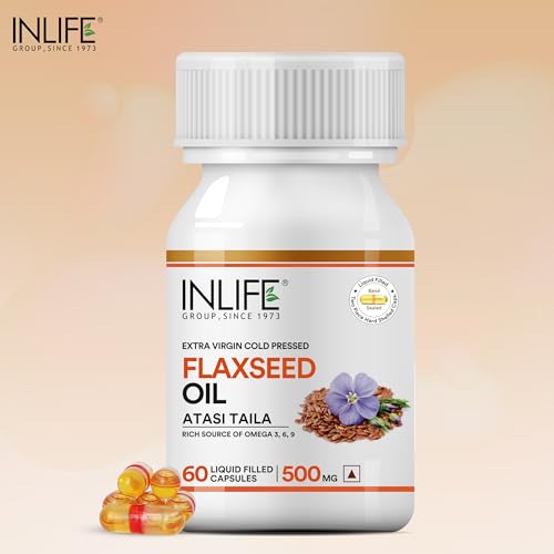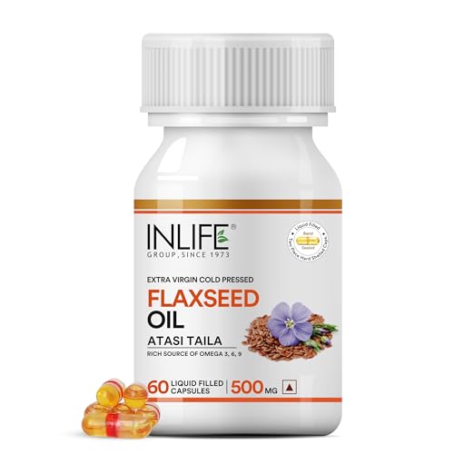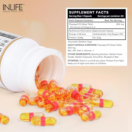 INLIFE contains Flaxseed Oil encapsulated in Liquid Filled Capsules. Advantages of liquid filled capsules over softgels Contains no plasticizers Improves product stability Low moisture intake Effectively masks taste & odour Band sealing prevents leakages Tamper proof capsules Offers enhanced bio availability. One of the main advantages of liquids is that they are absorbed directly by the body without going through break down stages. Active ingredients in liquid form should therefore be absorbed faster than in solid form. Flaxseed oil is a rich source of omega 3 6 9 fatty acids which are very essential for a healthy living. Flaxseed oil contains active form of omega-3 fatty acid known as alpha linolenic acid (ALA). Our body converts ALA into EPA (Eicosapentanoic acid) and DHA (Docosahexanoic acid) in the process of metabolism in the liver. EPA & DHA helps maintain your heart in good condition regulates the pressure in blood and keep it in normal range and maintain fats in body. Lignans present in flaxseed helps to maintain levels of sugar in blood . Flaxseed also increases metabolism of fat and effective in imparting weight management. It supports healthy mood and provides relief from stress. It is natural ayurvedic product. Suggested Usage: Take 1 capsule 3 times daily after meals or as directed by a healthcare professional.