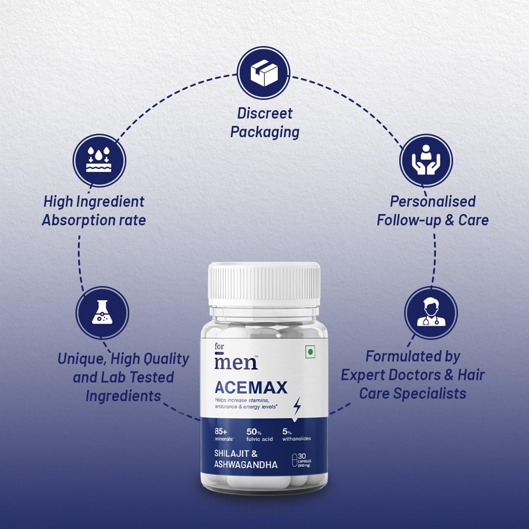 ForMen Acemax Capsules for Men | Shilajit Ashwagandha | Ayurvedic Supplements For Men - 30 Capsules (Pack of 2)