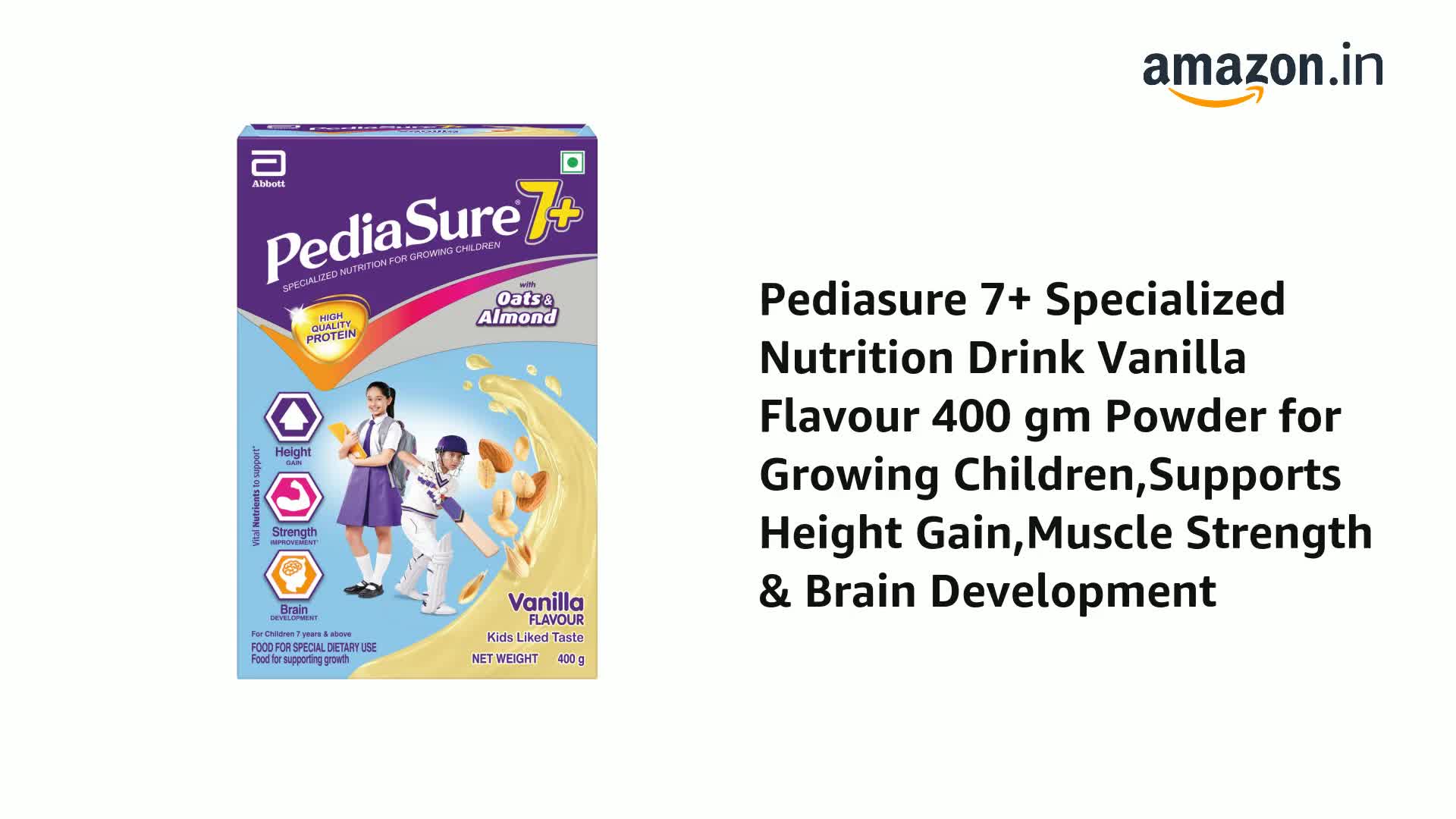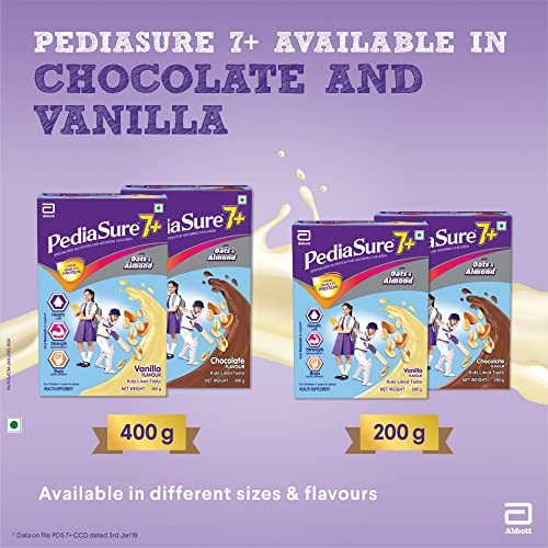 Pediasure 7+ is scientifically designed formula which contains high quality protein along with the goodness of Oats Almonds & essential nutrients. It is specialised nutrition for growing children (above 7 years of age) and provide complete balanced nutrition*. Pediasure7+ contains vital nutrients to support* Strength Improvement^ Height Gain & Brain Development. Pediasure is a trusted brand in more than 80 countries worldwide and has a rich heritage supported by more than 25 years of clinical studies worldwide